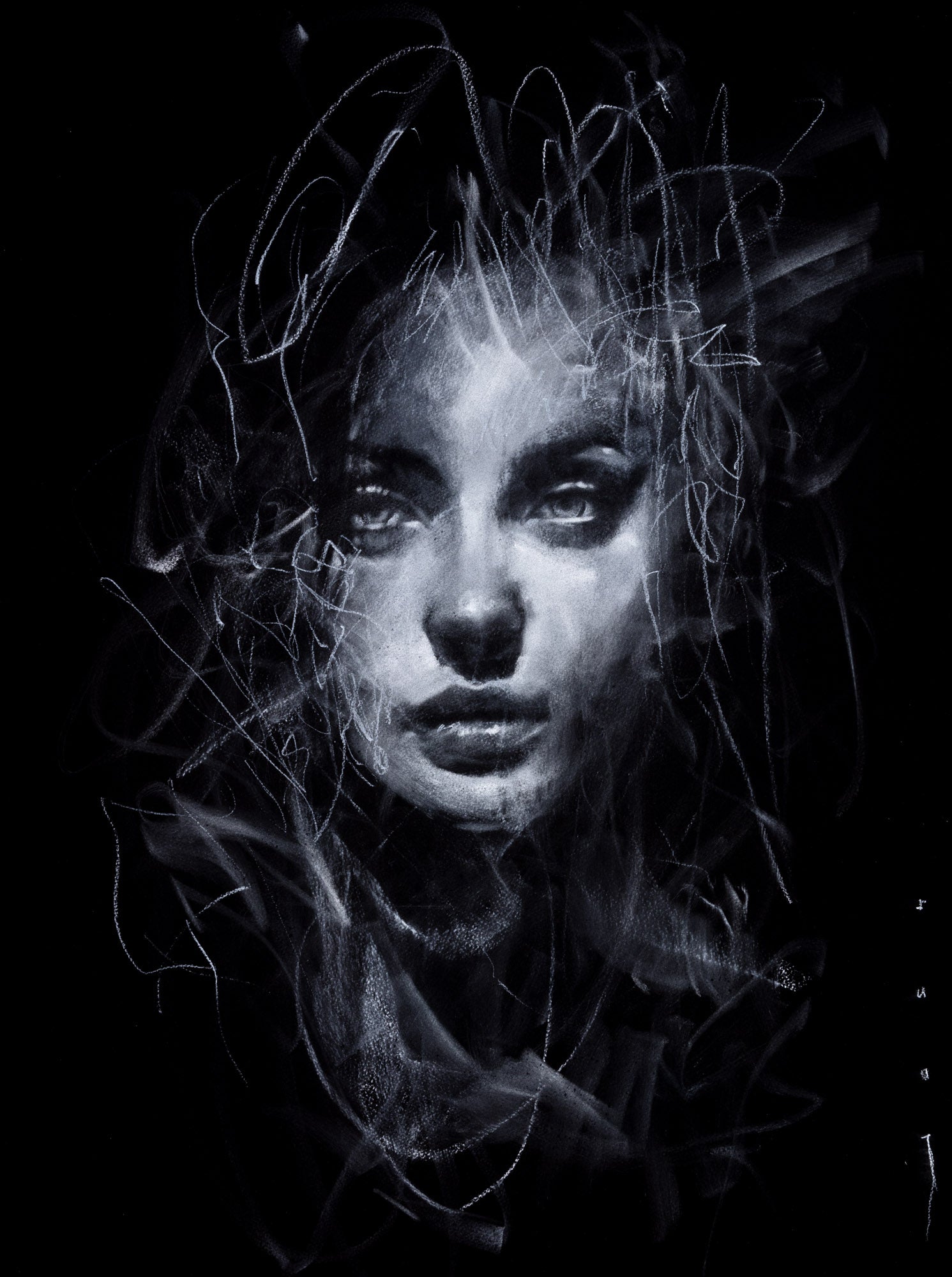 Original charcoal drawing on wove paper. A unique work. Executed by Mad Charcoal in 2024.